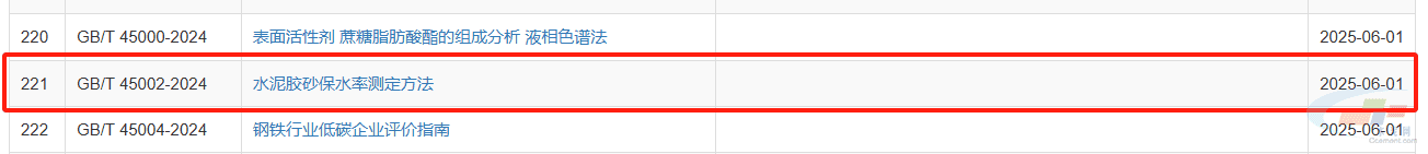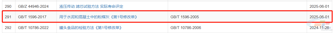 近日,国家标准化管理委员会正式批准并发布了国家标准2024年第29号公告,包含290项国家标准及4项重要修改单的公告。其中,水泥行业尤为值得关注的是下面一个标准:GB/T 45002-2024《水泥胶砂保水率测定方法》,该标准是新标准第一次发布,将于2025年6月1日执行;GB/T 1596-2017《用于水泥和混凝土中的粉煤灰》国家标准的第1号修改单,该修改单定于2025年6月1日正式生效。